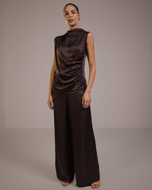 SAVE 20%Cole Satin Trousers | Espresso Brown