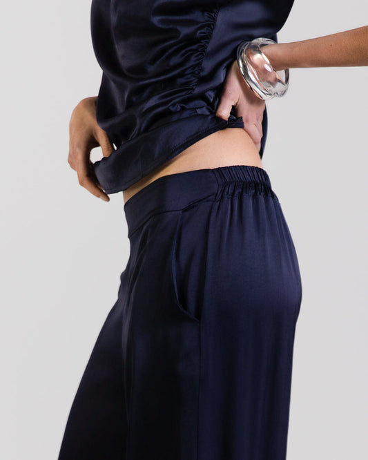 Corin Elastic Waist Satin Trousers | Amethyst Plum