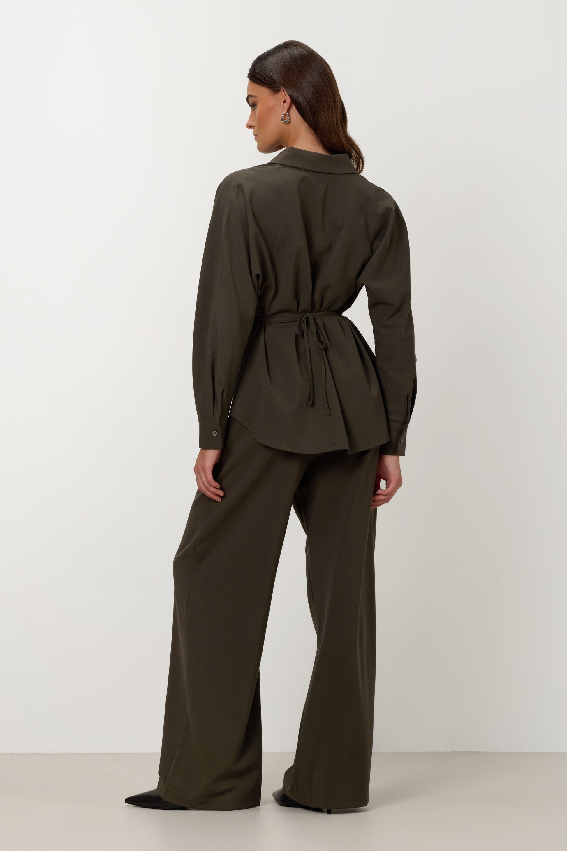 This piece is cut with a relaxed structure and shaped subtly through the waist with a tie at the back. The result is a silhouette that can shift: loose and fluid, or softly defined, according to your mood.